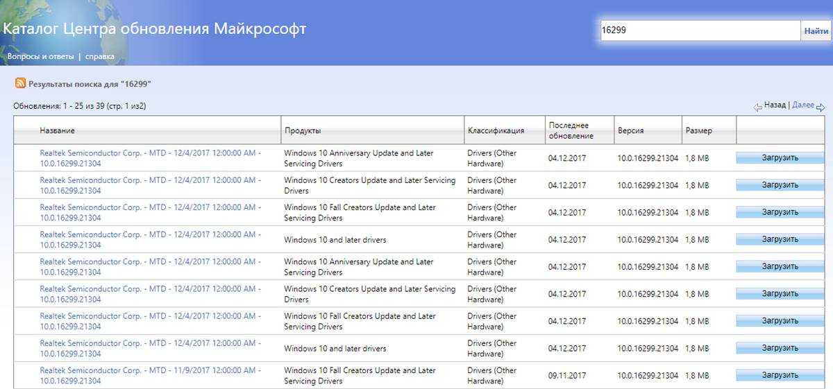 Данный метод подходит для поиска и установки небольших, так называемых накопительных, или кумулятивных обновлений из официального источника. Как и крупные апгрейды, их можно получить не только через автоматический Центр обновлений, встроенный в Windows 10, но и непосредственно с официального «». Чтобы найти обновления для своего компьютера, надо в поисковой строке портала ввести номер сборки своей ОС (например, 16299). Напомним, что посмотреть его можно, выбрав пункт «Система» при нажатии на меню Пуск ПРАВОЙ кнопкой мыши. Помимо накопительных обновлений в списке будут представлены обновления драйверов для всевозможного оборудования. Надо ли говорить, что их нужно устанавливать только чётко осознавая необходимость этого действия.