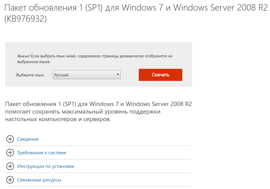 Если это обновление еще не установлено, откройте в веб-браузере страницу его загрузки. Выберите из списка язык и нажмите кнопку «Скачать».