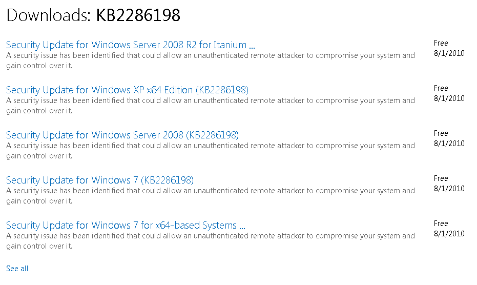 If the direct download links above do not work, head to the Microsoft Windows Update Catalog. The linked site requires ActiveX, so you’ll have to use Internet Explorer. Backwards, I know, but work with it for a moment.