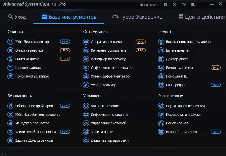 Грамотно перераспределяя ресурсы системы, технология обеспечивает максимальную эффективность использования процессора и памяти. Свыше 20 уникальных инструментов для обслуживания ПК. Advanced System Care Pro включает последнюю версию Toolbox компании IObit’s.