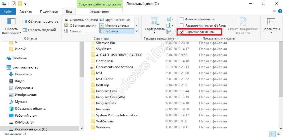 Для этого нажимаем на вкладку «Вид» в «Проводнике» и устанавливаем флажок напротив пункта «Скрытые элементы».