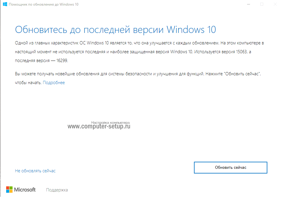 Рис. 7. Обновление до актуальной версии Windows 10