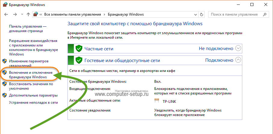 После этого обязательно включите брандмауэр, или проверьте, чтобы он был включен, так, как описано выше.