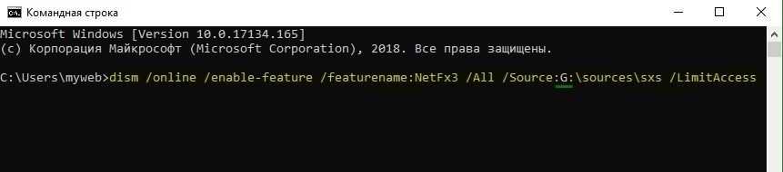Вбить следующее: «dism.exe /online /enable-feature /featurename:NetFX3 /Source:C:\sources\sxs /LimitAccess»