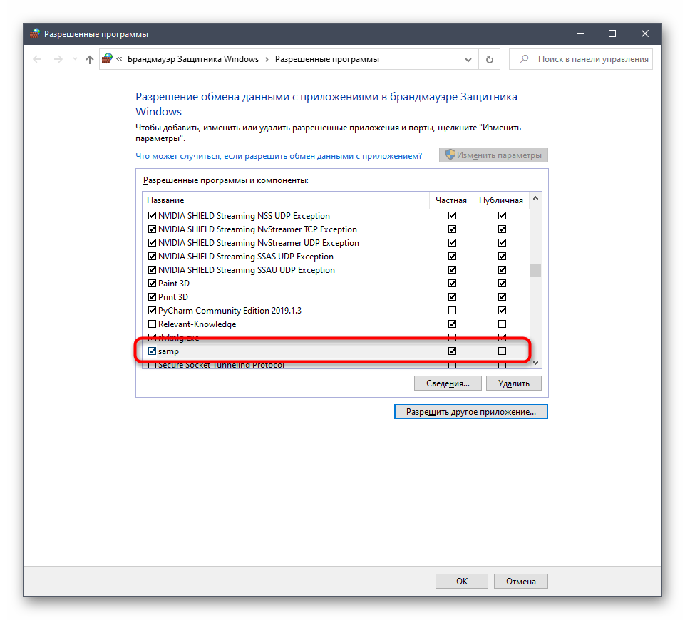Брандмауэр — стандартный сетевой защитник с набором базовых правил, функционирующий в операционной системе по умолчанию. Иногда его действие пагубно отражается на запуске игр, особенно тех, которые поддерживают сетевой режим. Экспериментировать с отключением межсетевого экрана не стоит, ведь проще внести проблемную игру в список исключений сразу, что осуществляется так: