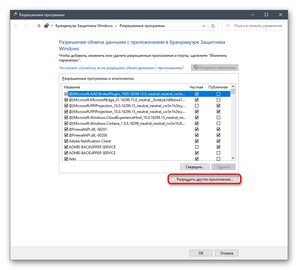 Далее щелкните по нижней кнопке «Разрешить другое приложение».