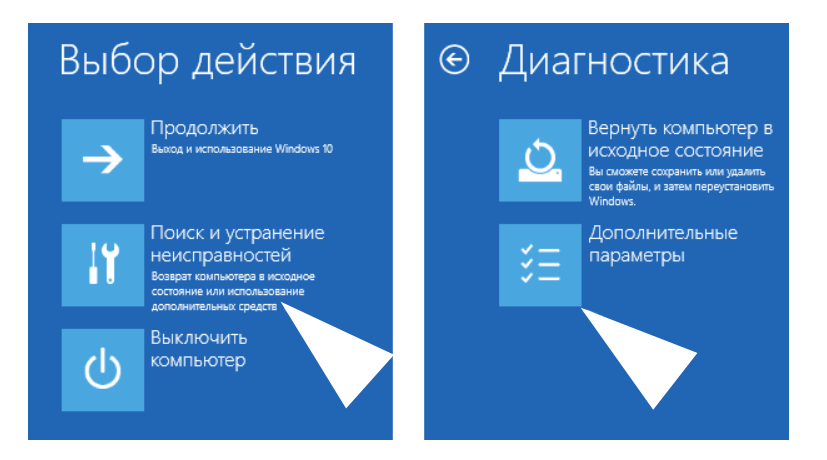 Есть и второй вариант проверки – через командную строку. Для этого вам необязательно запуска ОС с поддержкой командной строки. В уже знакомой вам ранее среде восстановления, где вы выбирали варианты загрузки, зайдите в раздел «Поиск и устранение неисправностей» -> «Дополнительные параметры» -> «Командная строка».