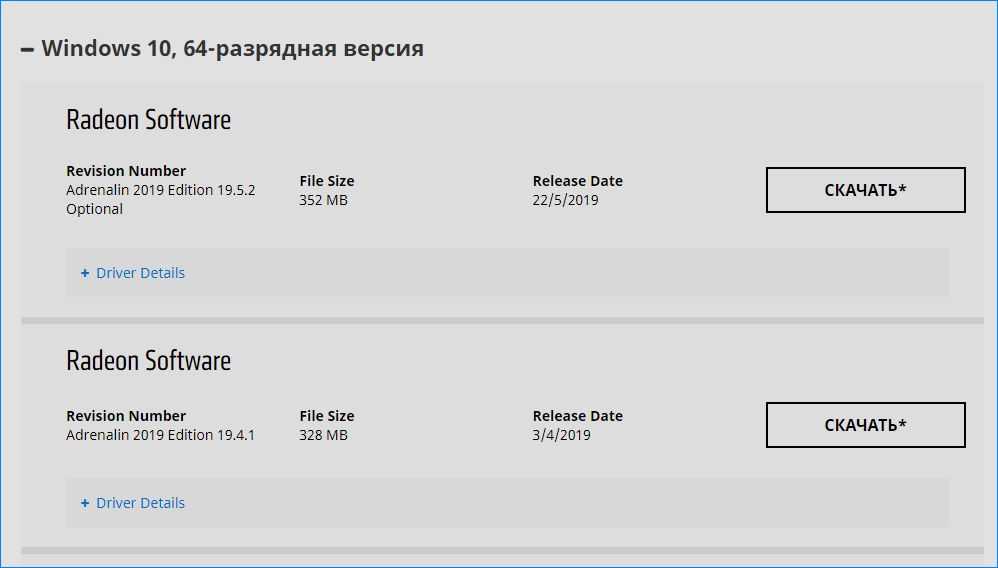 Выберите последнюю версию программного обеспечения (Radeon Software) и нажмите кнопку «Скачать». После запустите файл и следуйте инструкциям на экране до завершения установки.