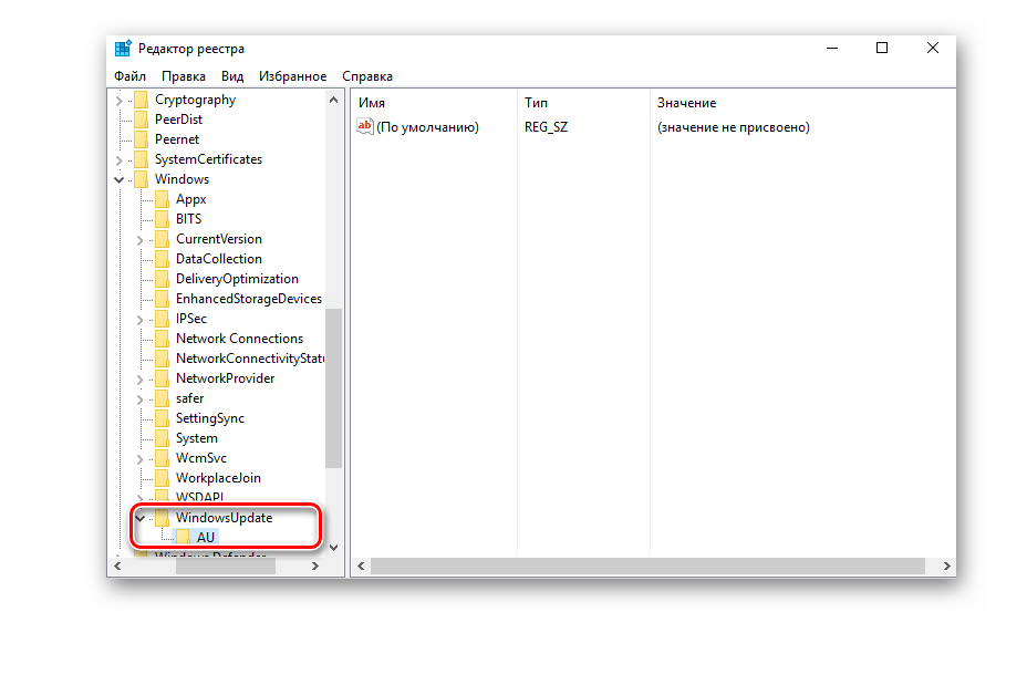 Далее «Windows Update» — «AU».