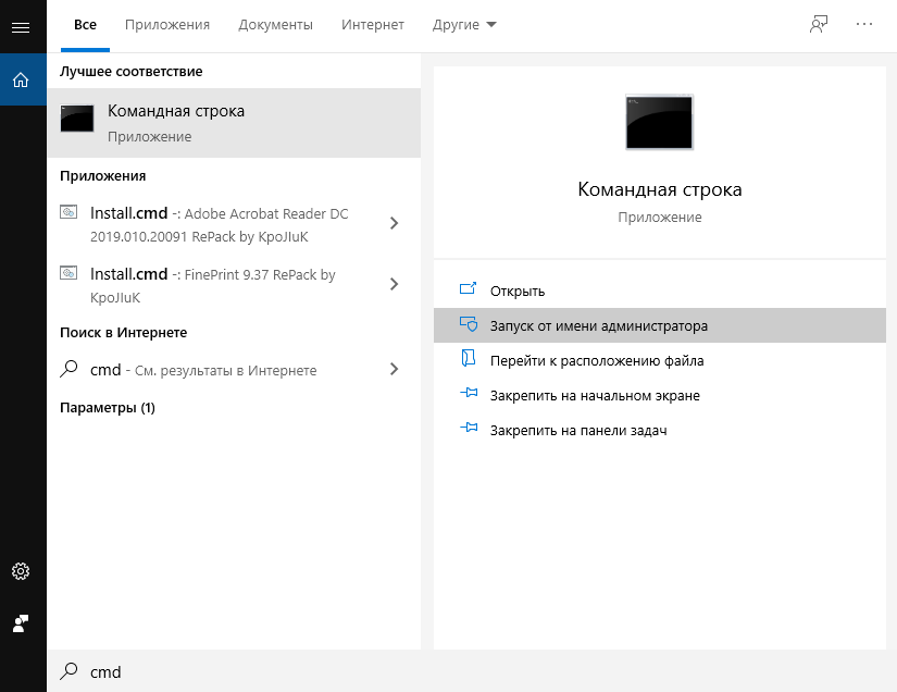 В поисковой строке Виндовс введите CMD и активируйте с правами админа.