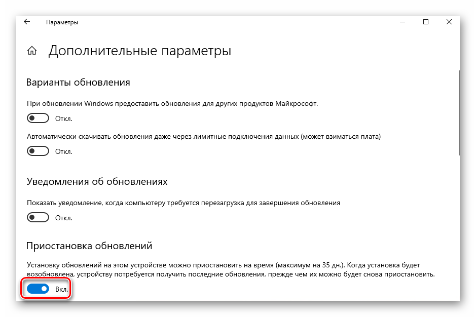 Вы можете получать только главные обновления Windows 10, выставив приостановку всех остальных на 35 суток, а функций системы на целый год. Латание брешей в безопасности ОС ограничивать временными рамками не следует.