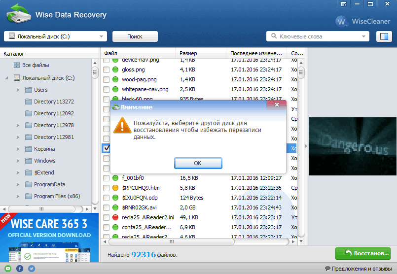 Выбираем место сохранения восстановленных файлов, то есть папку 29.10.2016