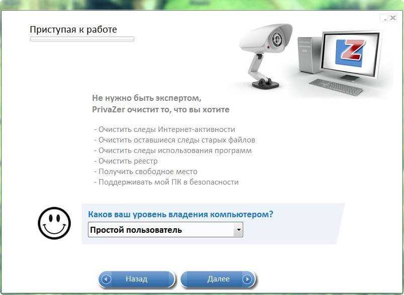Итак запускаем privazer, первое, что вас попросят сделать это оптимизировать очистку под вас, создав ваш профиль. Оставляем оптимизация под ваши потребности и жмем Далее.