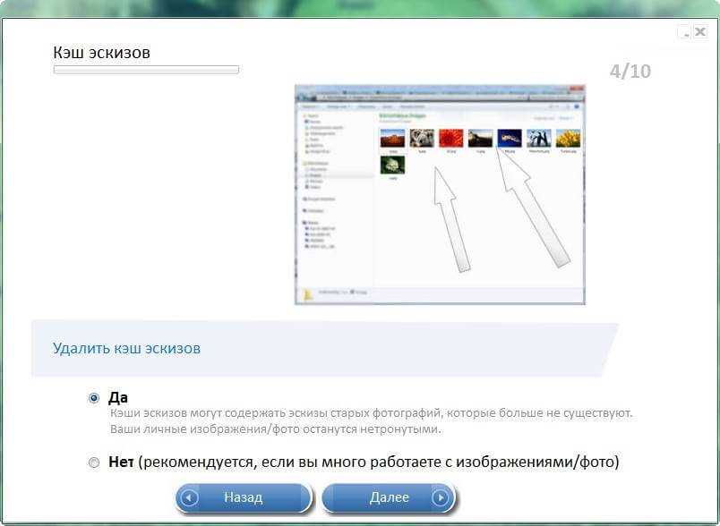 - Очистка файла thumbs.db (специальный файл, используемый операционной системой Windows, в котором хранятся эскизы изображений)
