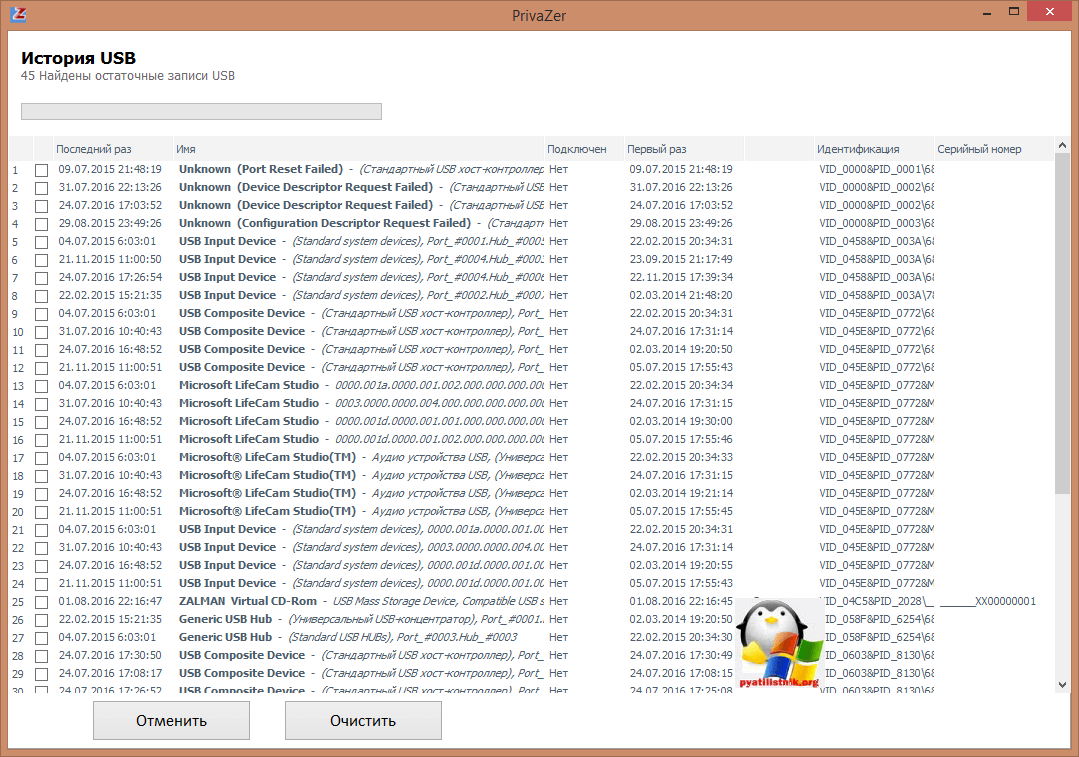 Как видите подробный список USB устройств с их идентификаторами, и датой использования.