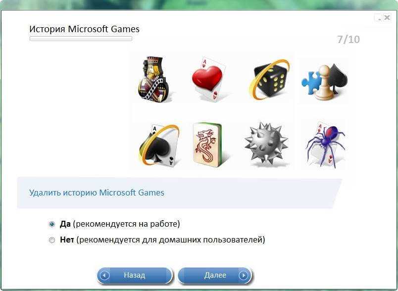 Если вы не пользуетесь стандартными играми Microsoft Games, то можете смело выбрать пункт «Да» для удаления истории игр.