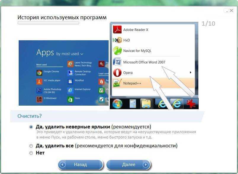В окне «История используемых программ» можно согласиться с выбором программы PrivaZer, а потом нажать на кнопку «Далее».