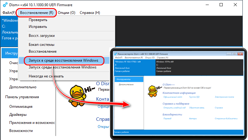 Запуск Dism++ в среде WinPE