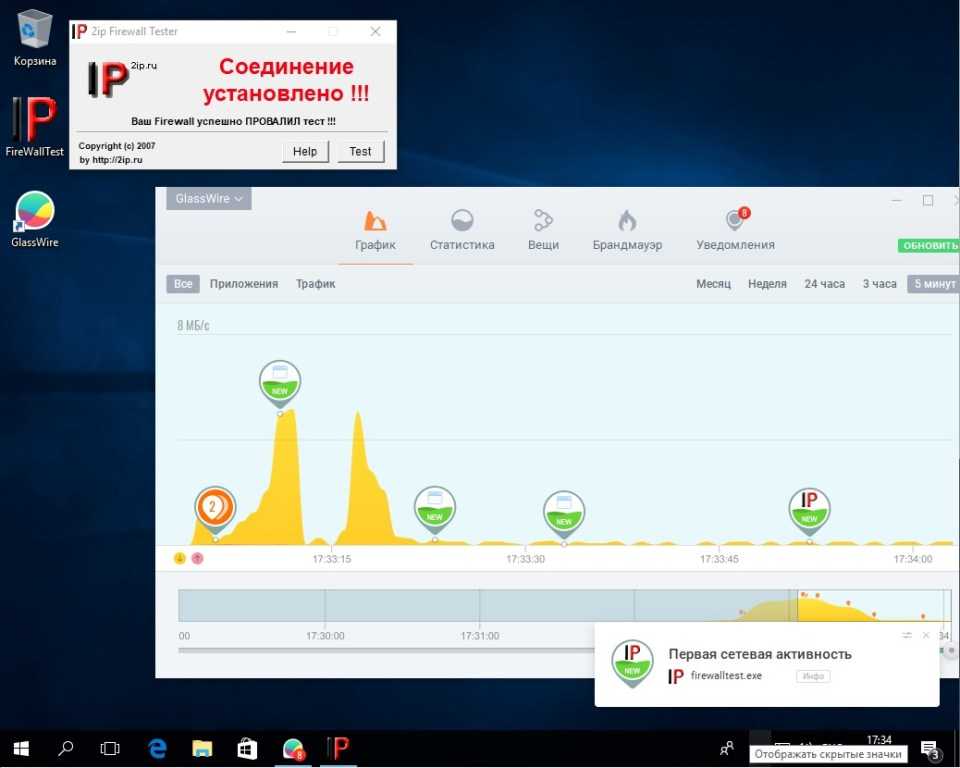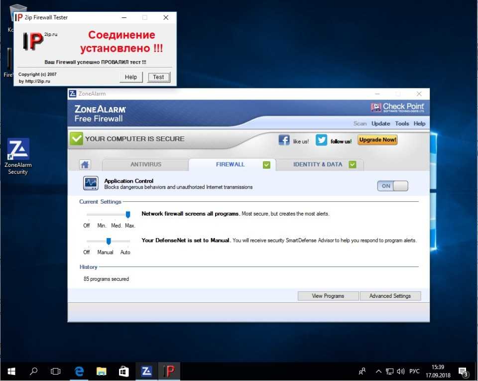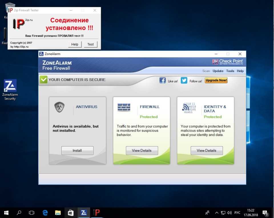 После установки и запуска файрвола ZoneAlarm пропустил наше соединение.