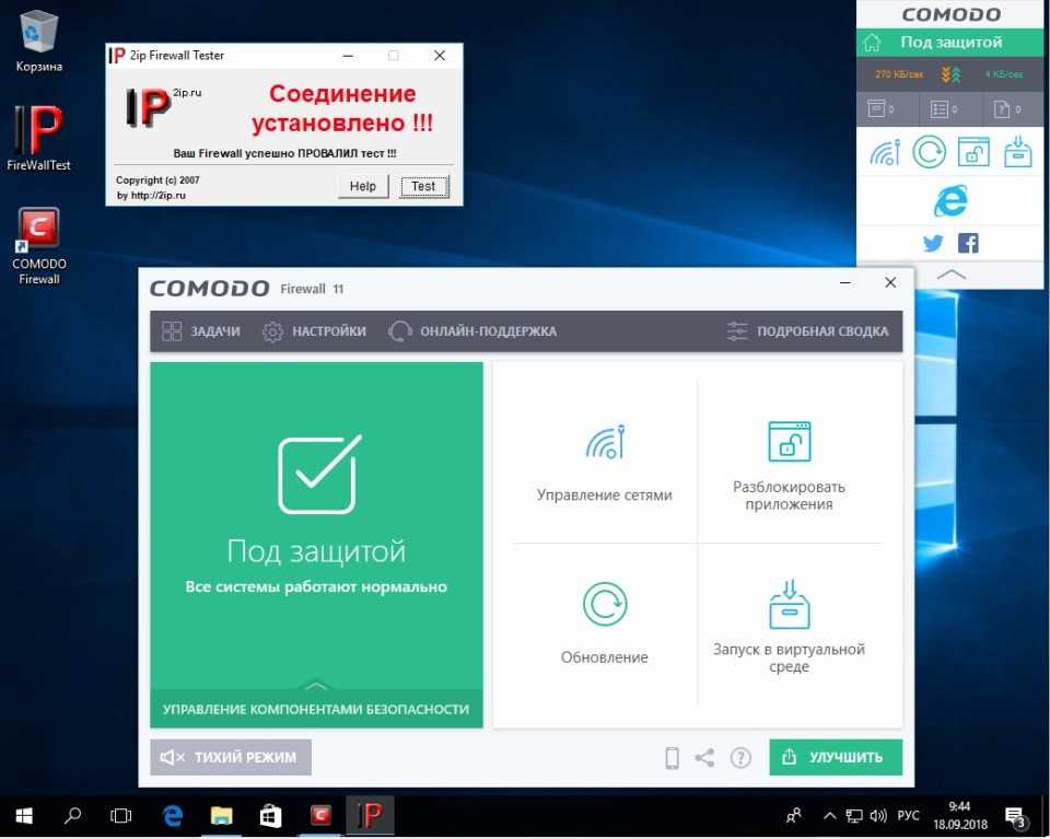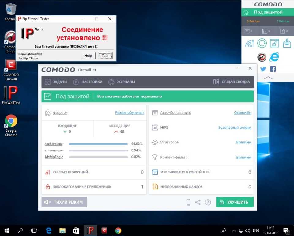 - Автоматическая «песочница» и виртуальный рабочий стол в comodo firewall для windows дают возможность изолированного моделирования поведения настораживающего ПО без риска повреждения системы.