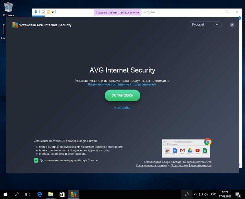 Установка AVG начинается с узнаваемого окошка инсталлера.