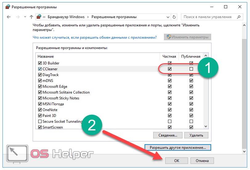 - Выбираем, для каких сетей будет выставлено исключение, и нажимаем «ОК».