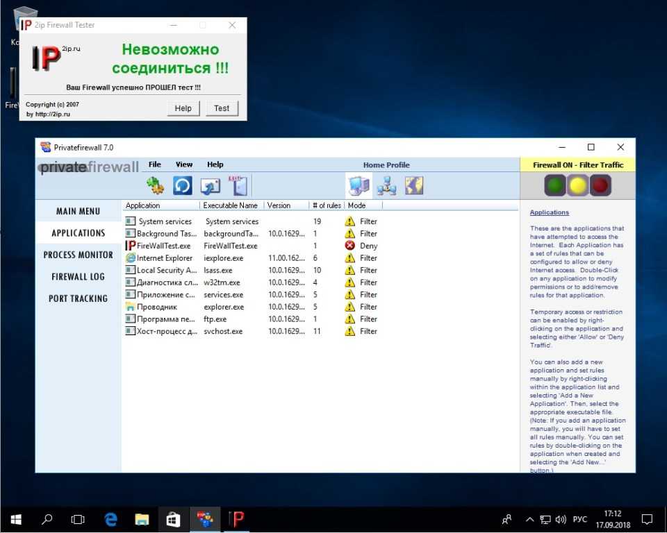У PrivateFirewall очень простой интерфейс, и даже без знаний английского можно легко в нем разобраться.