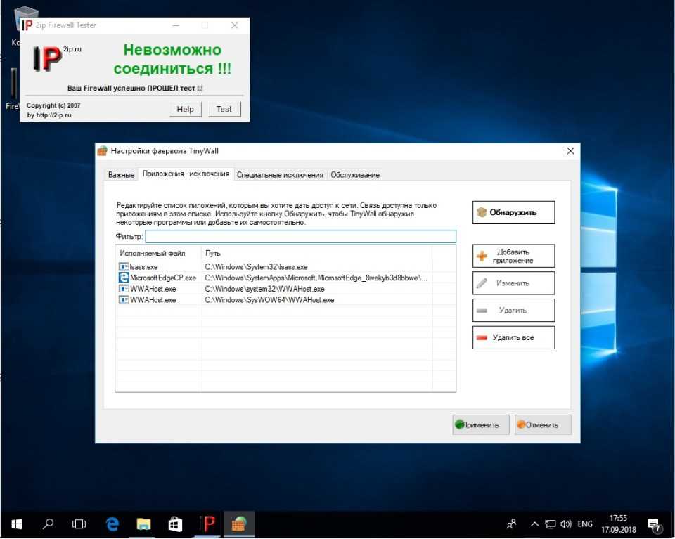 Однако при составлении белого списка TinyWall ожидаемо справился с поставленной задачей.