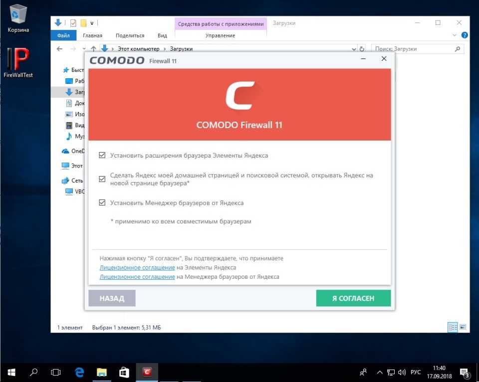 Однако во время установки файрвол вызвал смешанные чувства. Сначала предлагал поставить расширения для Яндекс.Браузера.