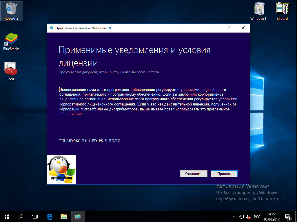 Обязательным шагом будет принятие лицензионного соглашения.
