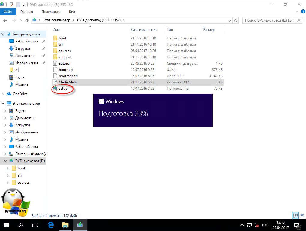 Если автозапуск в Windows 10 у вас не сработал, открываем диск и находим там исполняемый файл setup.exe