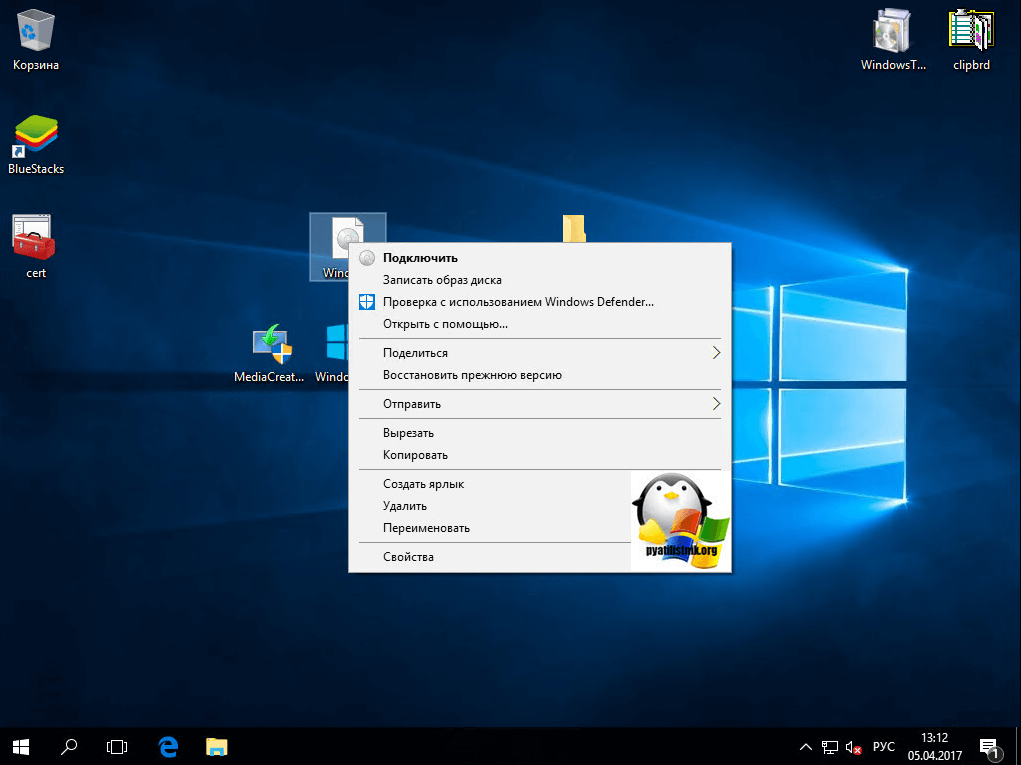 Теперь щелкаете правым кликом по скачанному ISO и выбираете подключить.