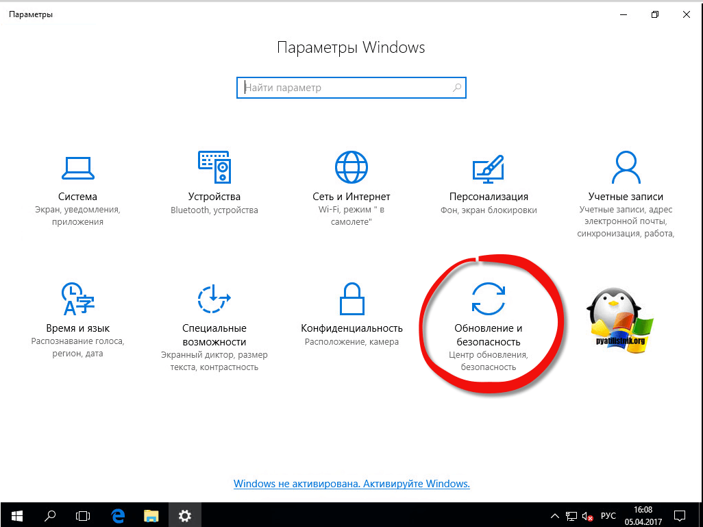 - Откройте Обновление и безопасность.
