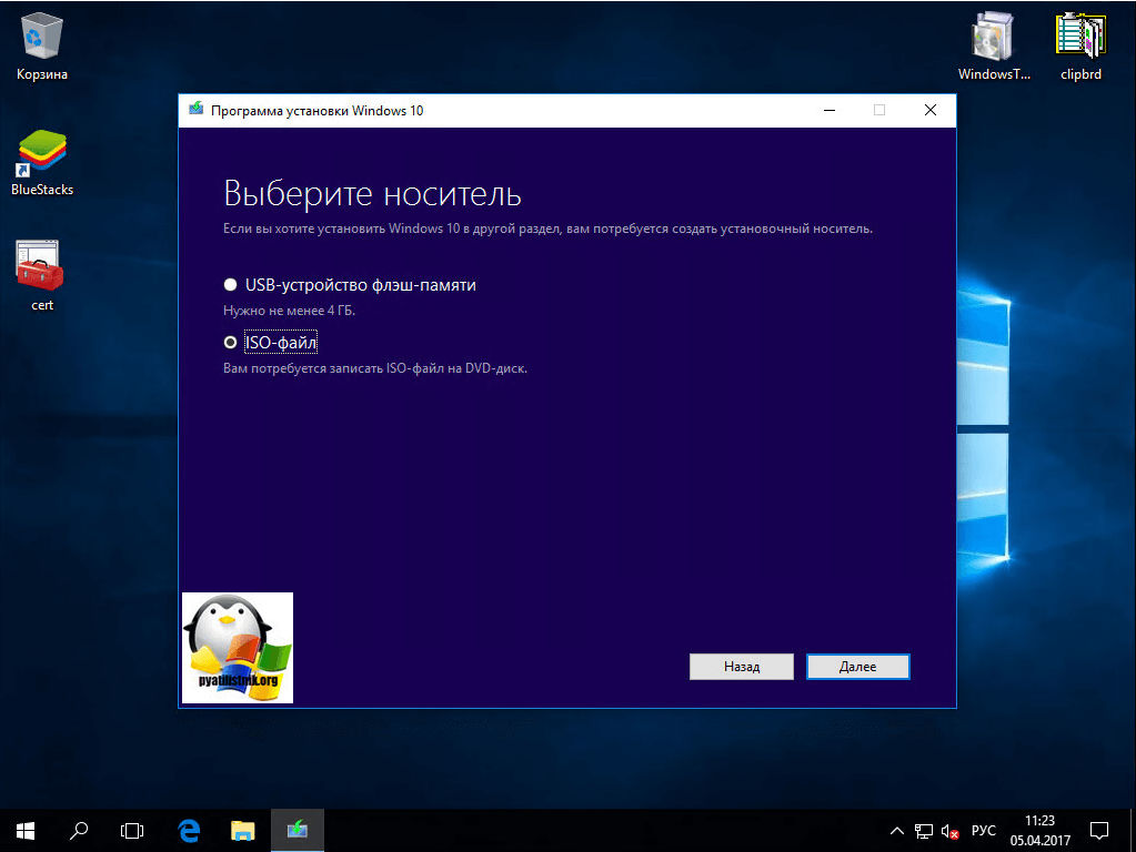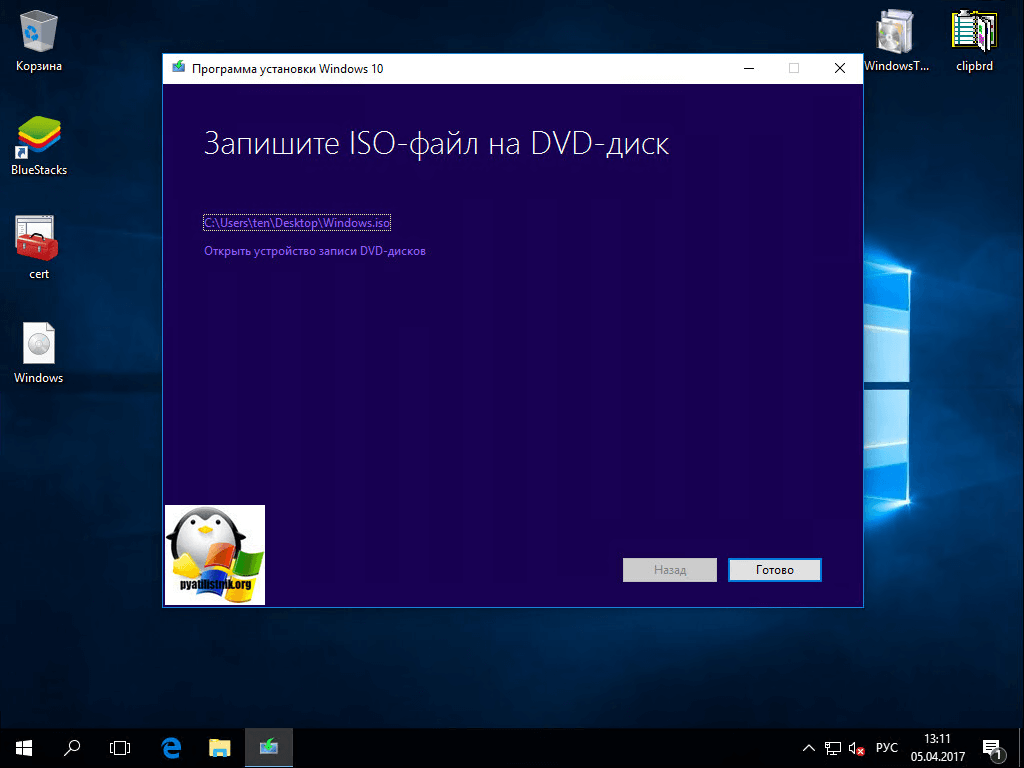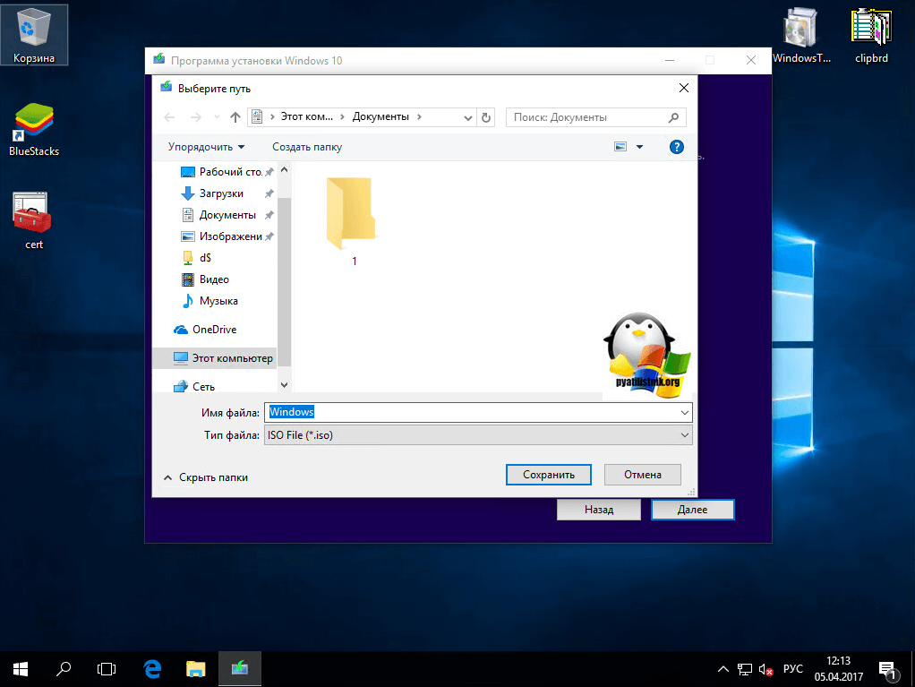Выбирает куда вам нужно сохранить оригинальный образ ISO Creators Update, я обычно выбираю рабочий стол.