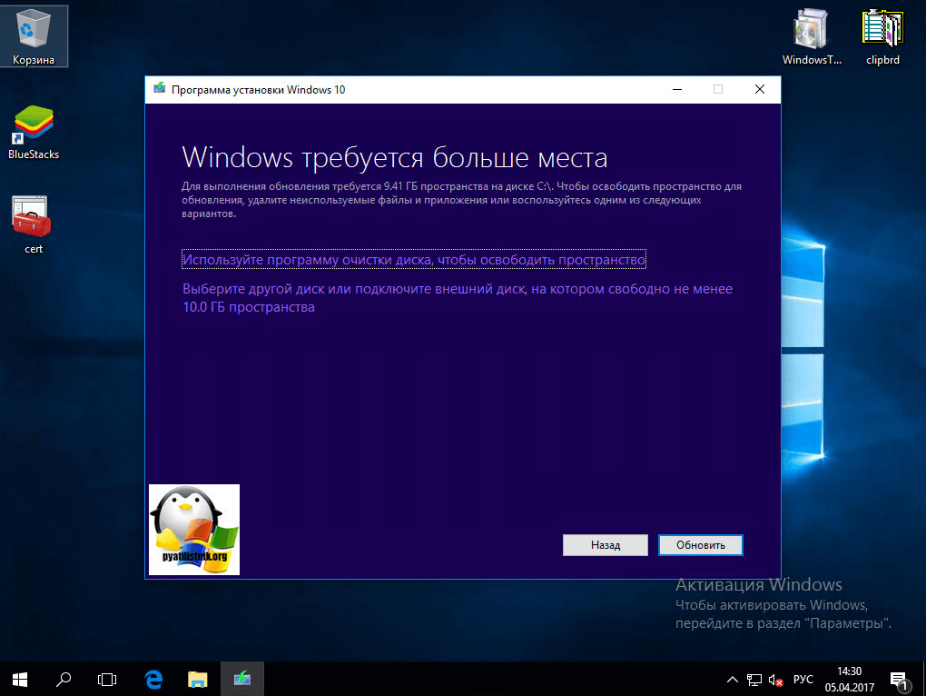 На следующем этапе мастер установки Creators Update удостовериться, хватает ли вам свободного места, если нет, то вы увидите сообщение