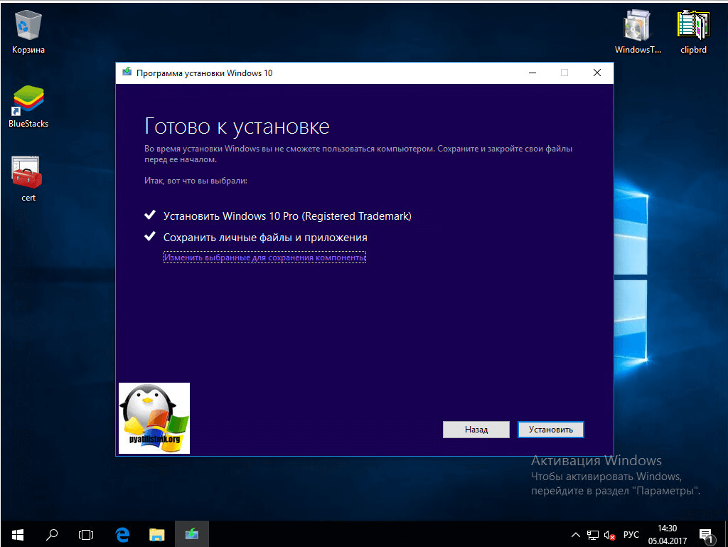 Процесс установки Windows 10 Creators Update с помощью Помощника по обновлению происходит следующим образом: