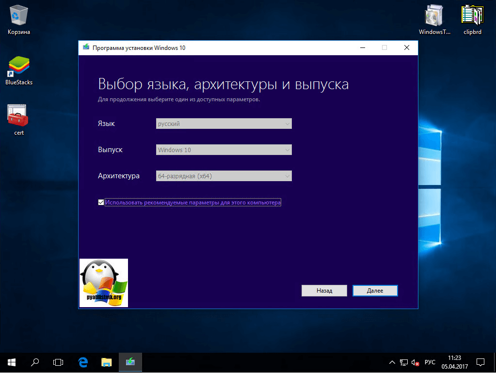 Вы указываете, какой язык вам необходим и разрядность, автоматически подставляется ваша текущая разрядность, но есть возможность скачать Windows 10 Creators Update под обе архитектуры