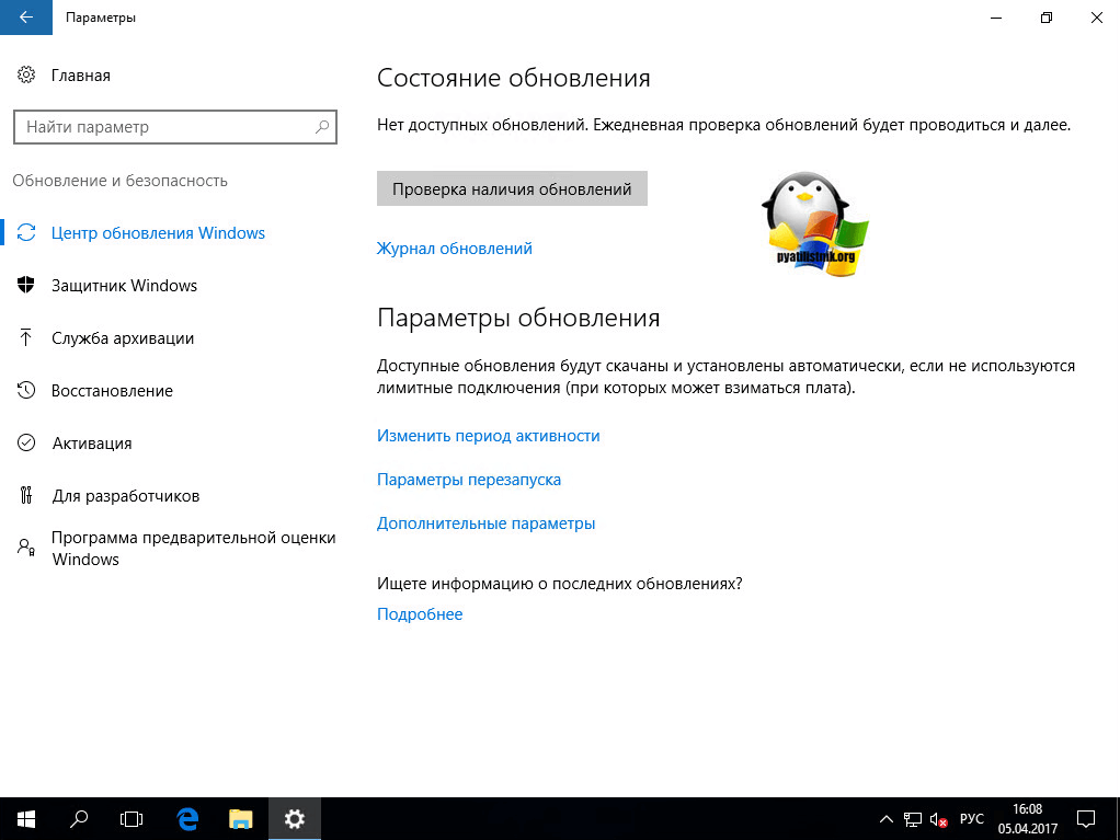 Обновление через центр обновлений Windows 10