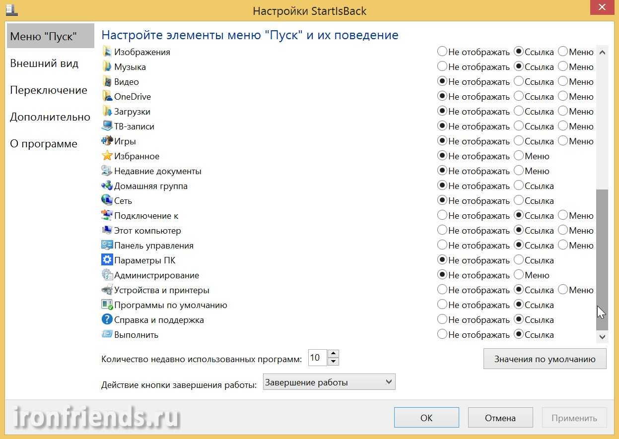 Что касается меню ПУСК, то если оно вам не понравится, никто не мешает его отключить и дополнительно установить одну из рассмотренных нами программ.