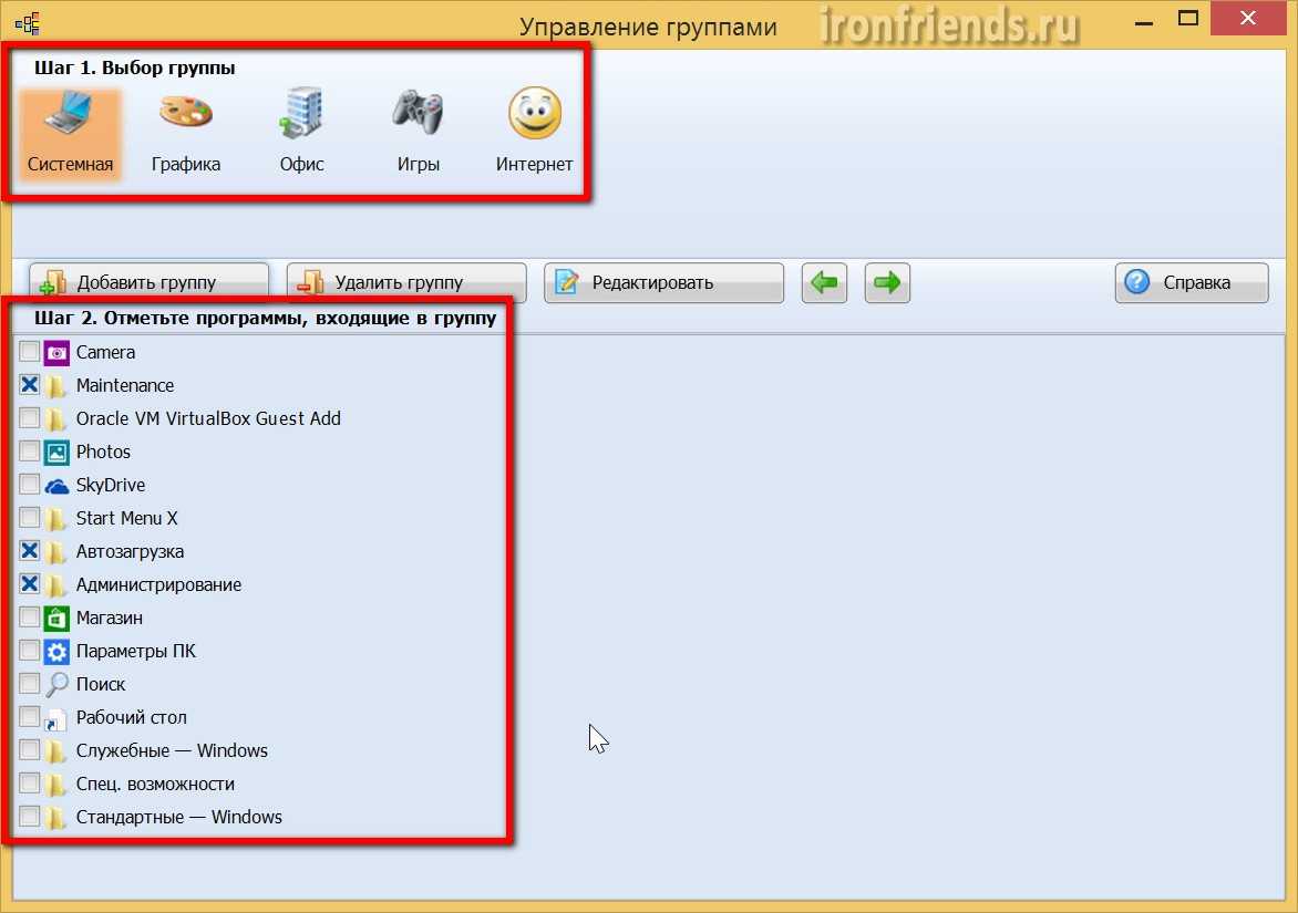 Интересная возможность «Start Menu» — виртуальные группы. Их использование сделает доступными пять групп («Графика», «Интернет», а также другие), которые поместит верхняя часть меню.