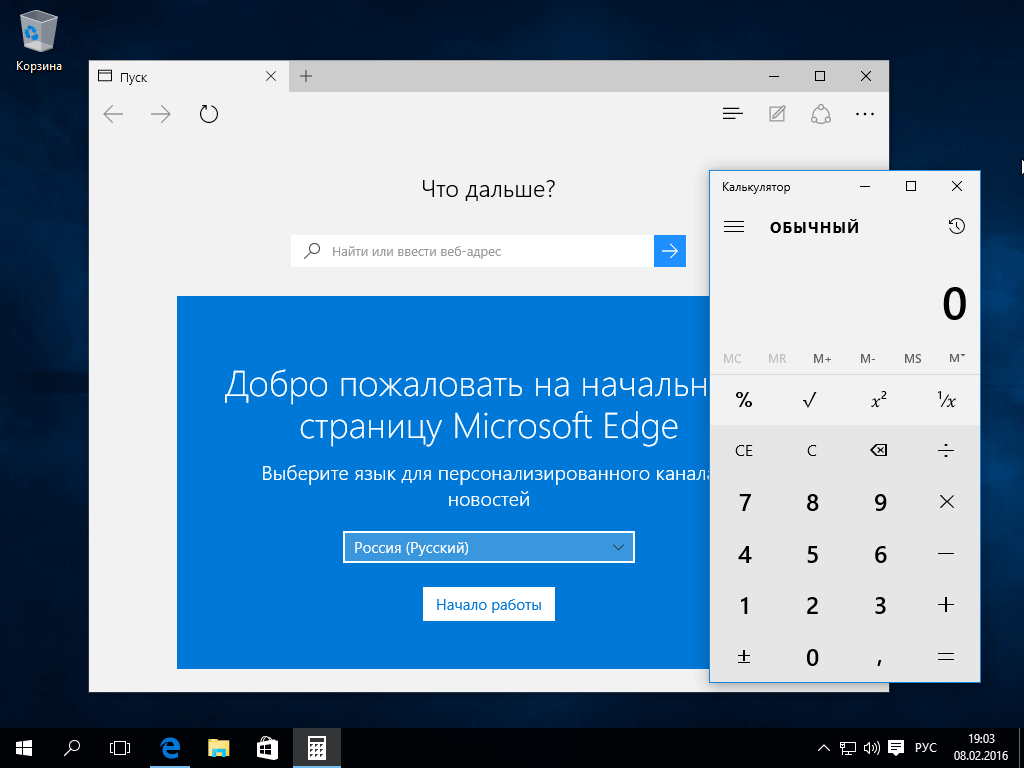 Разберемся с функцией «Snap» подробней. Для этого запустим два окна, а именно новый браузер Microsoft Edge и обновленный калькулятор.