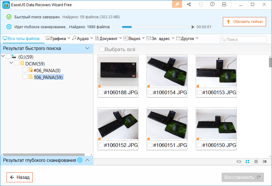 Восстановление удаленных файлов в EaseUS Data Recovery Wizard Free