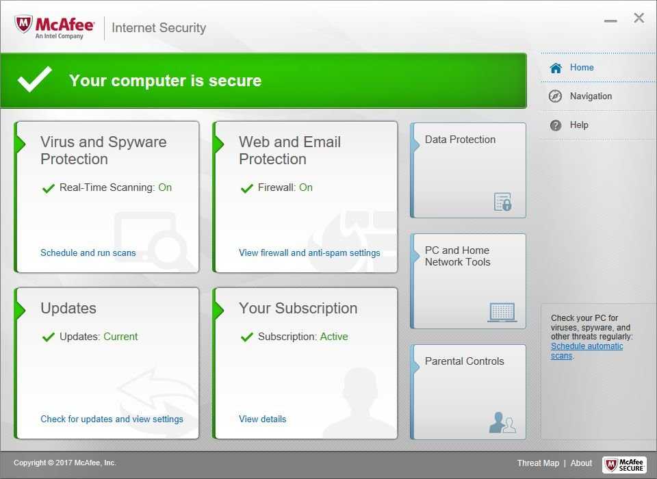 Замыкает пятерку топ-продуктов среди лучших антивирусов для Windows 10 McAfee Internet Security