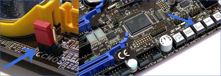 Переключить тумблер Clear CMOS – он располагается обычно рядом с батарейкой на материнской плате. Затем подождите несколько секунд и верните тумблер обратно. В некоторых моделях тумблер выполнен в виде кнопки.