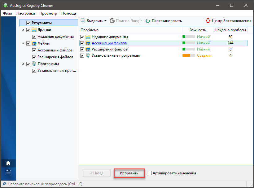 Программа автоматически проверит системный реестр на наличие ошибок и выдаст информацию о степени захламленности. Теперь остается только нажать на кнопку «Исправить».