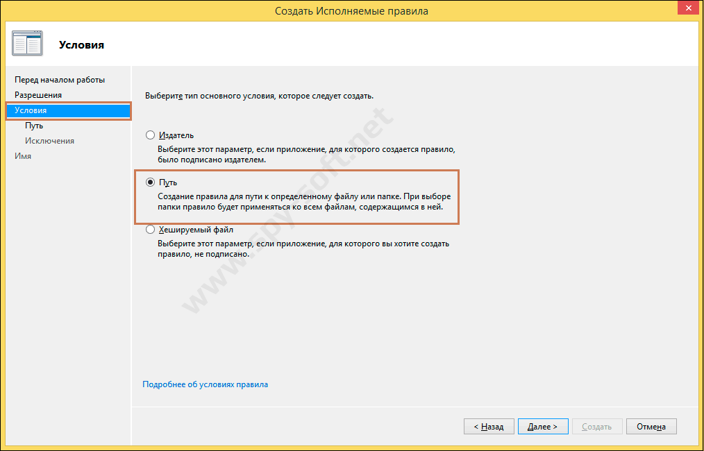 Я буду создавать правила именно в первой группе, так как нам нужно запретить запуск или установку программы, а они (ну большая их часть) имеют расширение *.exe