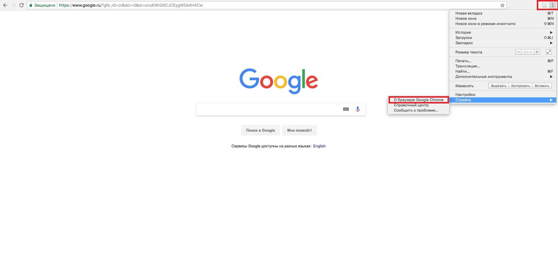 Запустите браузер. Нажмите на три точки в верхнем правом углу. Выберите меню «Справка» → «О браузере Google Chrome».