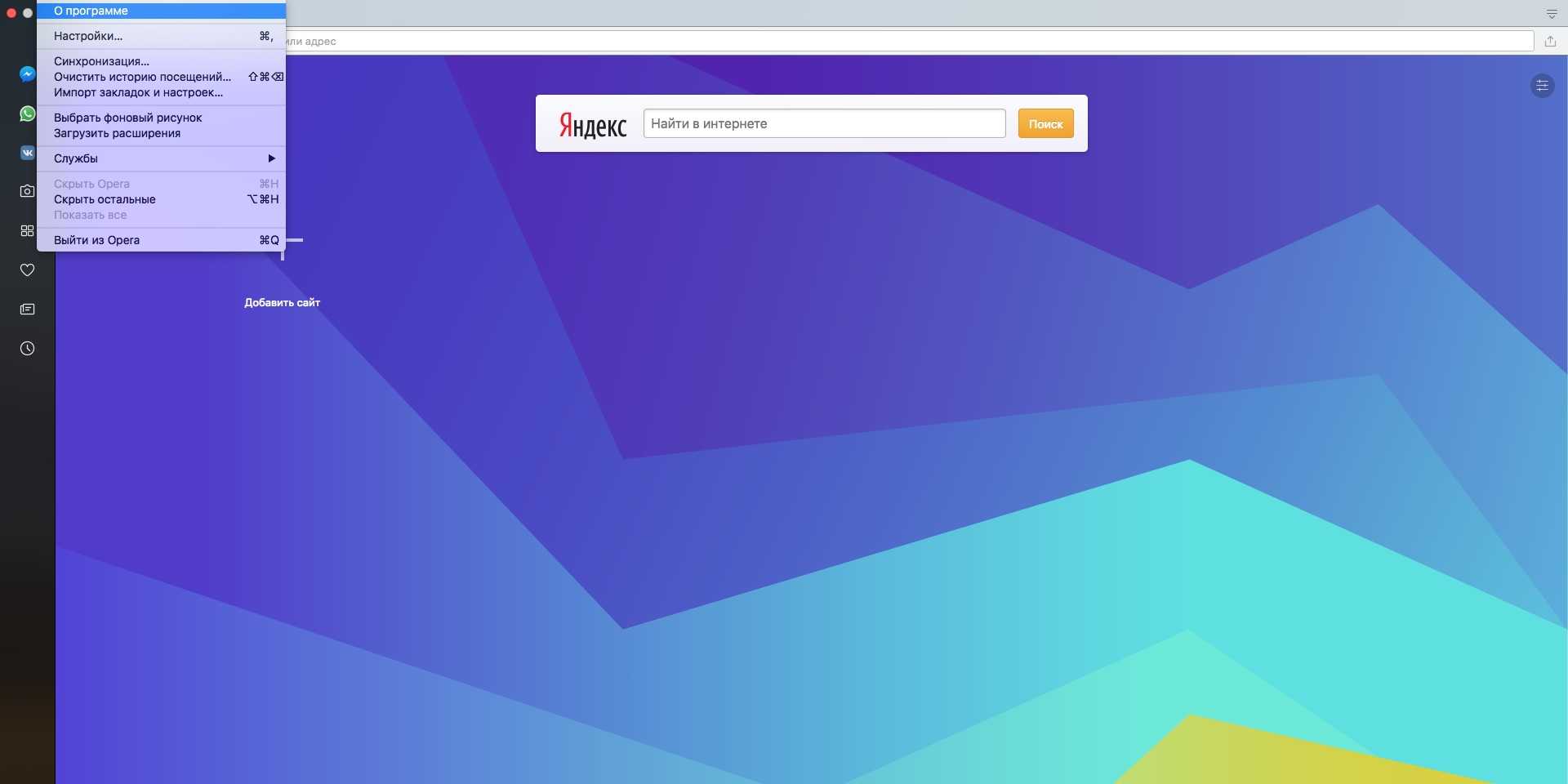 Запустите браузер. Нажмите на значок Opera в верхнем левом углу. Выберите пункт «О программе».