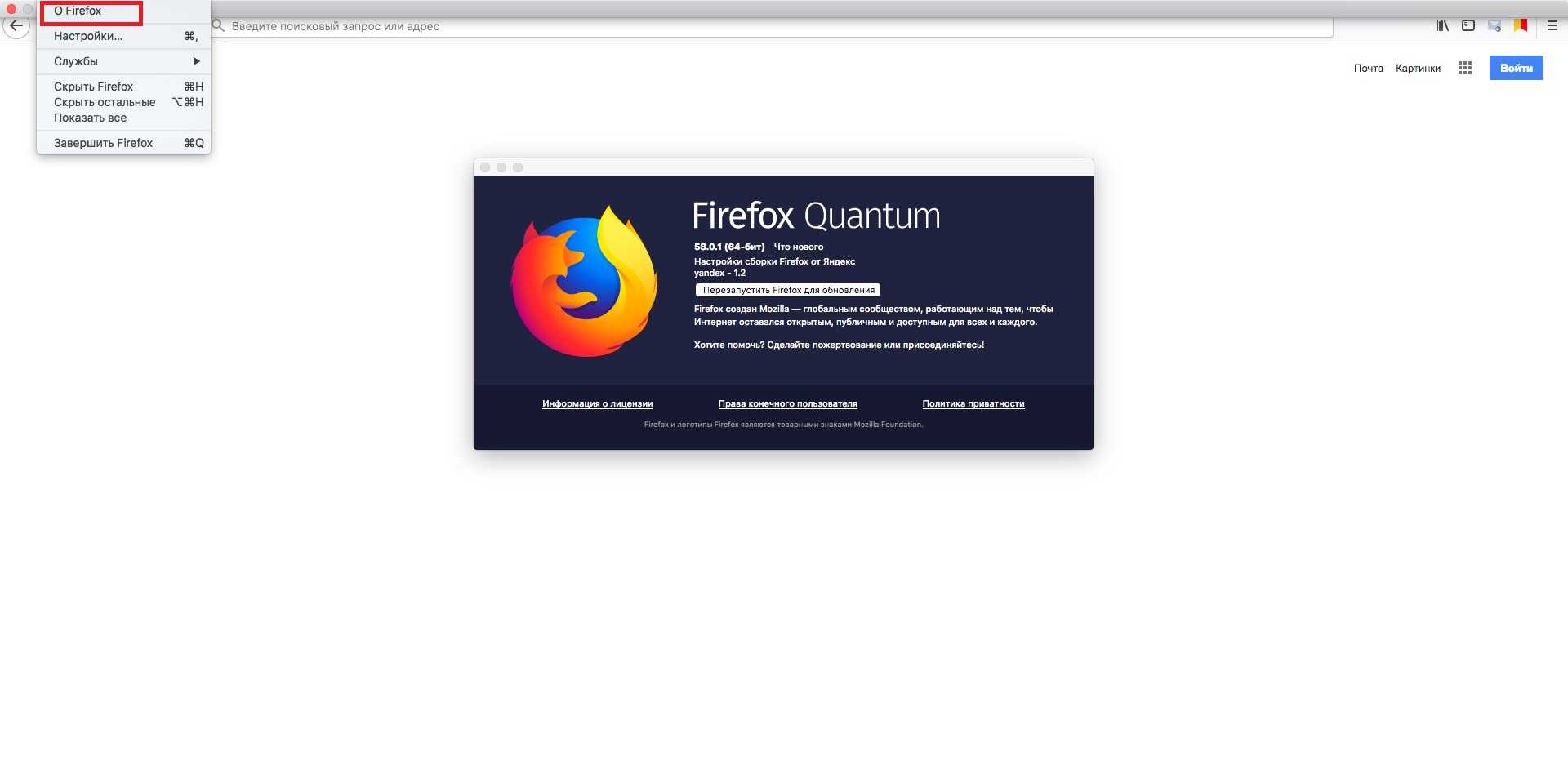 Чтобы проверить наличие обновлений, запустите браузер и выберите пункт «О Firefox».